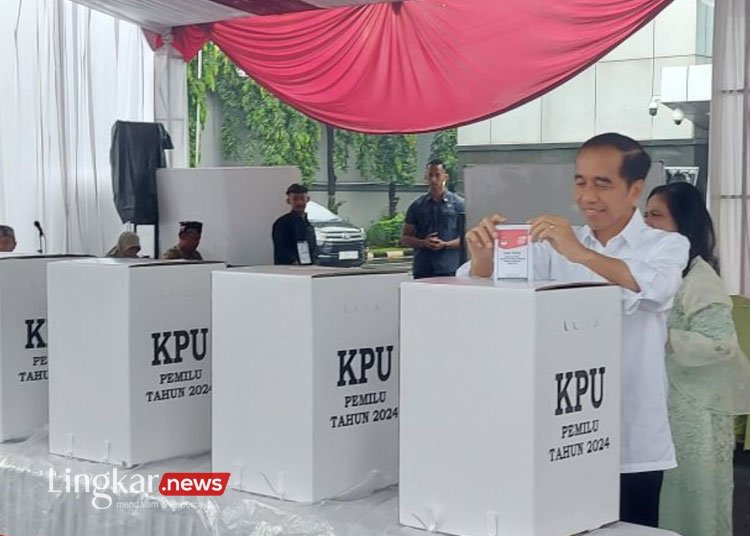 Jakarta, LINGKAR – Presiden Joko Widodo dan Ibu Negara Iriana tiba di TPS 10, Kelurahan Gambir, Kecamatan Gambir, Jakarta Pusat, Jakarta, yang berlokasi di Gedung Lembaga Administrasi Negara (LAN), Rabu, untuk menyalurkan hak politik mereka pada Pemilu 2024.
