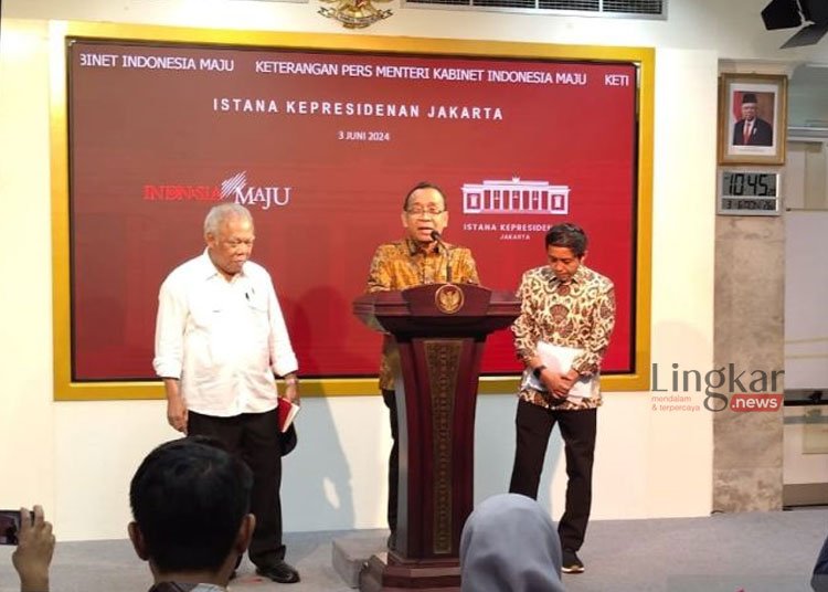 JAKARTA, Lingkar.news – Menteri Sekretaris Negara (Mensesneg) Pratikno mengumumkan pengunduran diri Kepala Otorita Ibu Kota Nusantara (OIKN) Bambang Susantono dan Wakil OIKN Dhony Rahajoe di Istana Kepresidenan Jakarta, Senin, 3 Juni 2024. Posisinya akan digantikan oleh Menteri Pekerjaan Umum dan Perumahan Rakyat (PUPR) Basuki Hadimuljono.