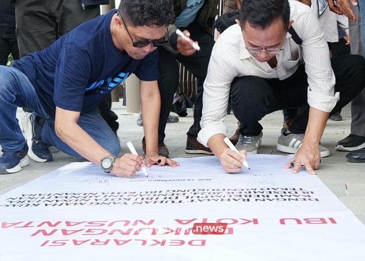 “Dengan rahmat Tuhan Yang Maha Kuasa, kami berkumpul di Ibu Kota Nusantara pada 18 Desember 2024. Dengan ini, kami menyatukan tekad mendukung Ibu Kota Nusantara (IKN).”