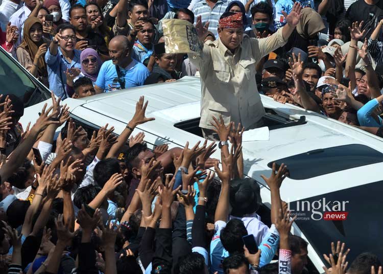 BENGKULU, Lingkar.news – Calon presiden nomor urut dua Prabowo Subianto berkampanye di Kota Bengkulu, Bengkulu, pada Kamis, 11 Januari 2024 dengan ditemani Ketua Umum Partai Amanat Nasional (PAN) Zulkifli Hasan (Zulhas) bersama artis sekaligus pengusaha muda Raffi Ahmad.