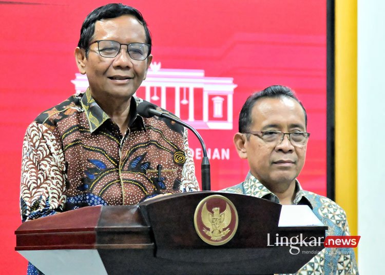 JAKARTA, LINGKAR – Presiden Joko Widodo didampingi Menteri Sekretaris Negara Pratikno menerima Menteri Koordinator Bidang Politik, Hukum, dan Keamanan (Menko Polhukam) Mahfud Md di Istana Merdeka, Jakarta, pada Kamis, 1 Februari 2024. Dalam pertemuan tersebut, Mahfud Md menyerahkan surat pengunduran diri dari jabatannya sebagai Menko Polhukam di Kabinet Indonesia Maju.