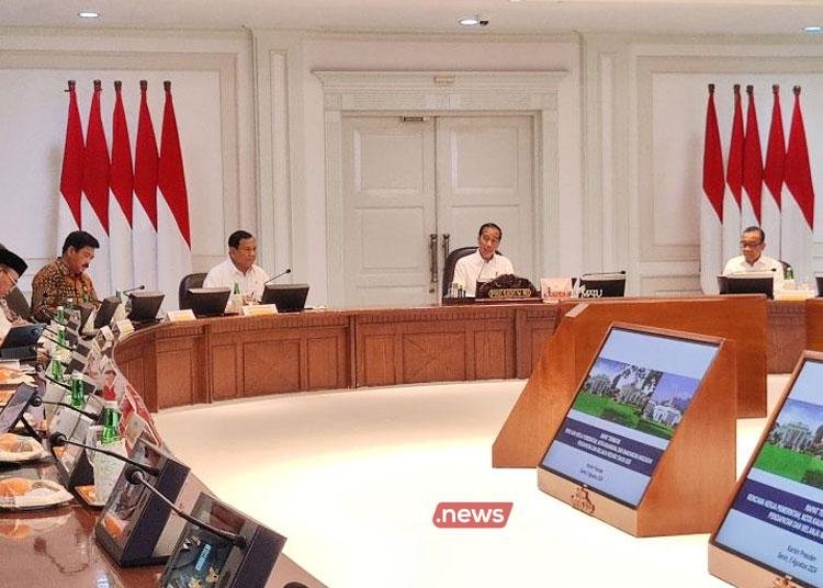 Dalam rapat terbatas itu, Presiden Jokowi tampak duduk di tengah, kemudian diapit oleh Menteri Pertahanan (Menhan) Prabowo Subianto yang juga Presiden terpilih di sisi kanannya, serta Menteri Sekretaris Negara Pratikno di sisi kanan.